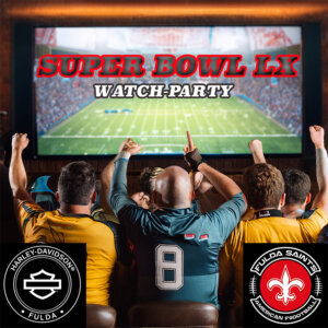 Super Bowl Night mit den Fulda Saints ️ 8. Februar 2026 | Burnout Bar – Harley-Davidson Fulda Die Fulda Saints laden gemeinsam mit Harley-Davidson Fulda zur ultimativen Super Bowl Night ein! Erlebt das größte Football-Event des Jahres in einzigartiger Atmosphäre – mit allem, was dazugehört: All you can eat – saftige Burger & Hot Dogs Getränke (außer Schnaps) inklusive Snacks satt die ganze Nacht Eintritt: 45,- € pro Person Kommt vorbei und feiert mit den Saints die Super Bowl Party des Jahres – mit…